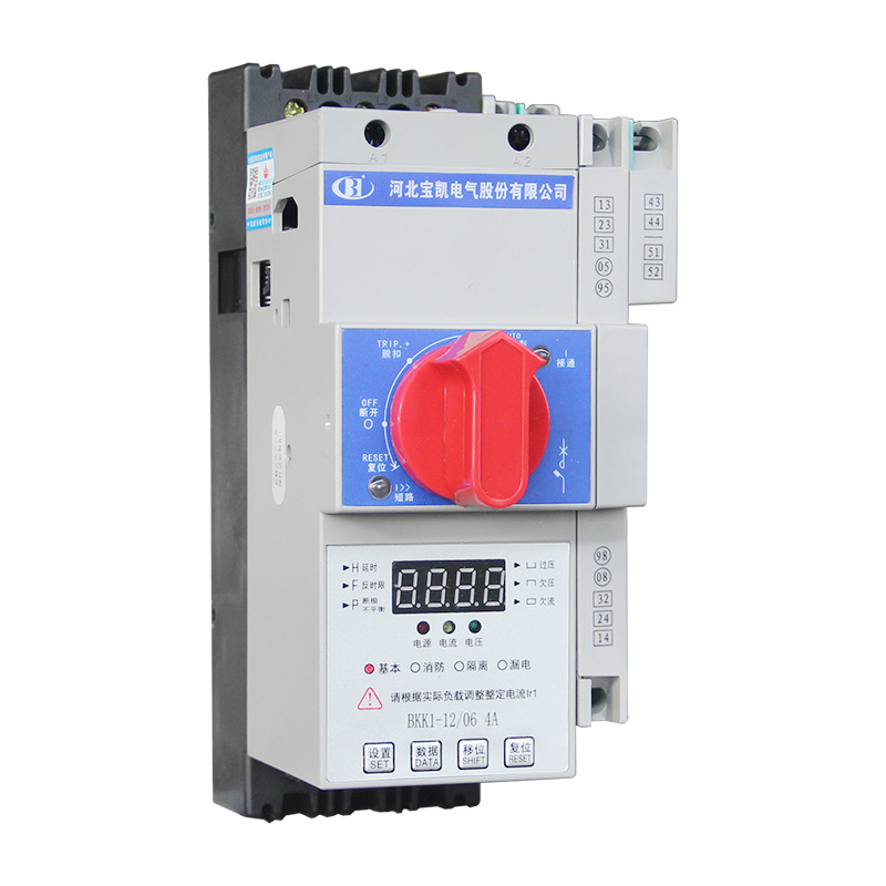 BKK1系列控制与保护开关电器主要用于交流50Hz(60Hz)、额定电压至690V、额定工作电流自0.4A至125A的电力系统中接通、承载和分断正常条件(包括规定的过载条件)下的电流,且能够接通、承载并分断规定的非正常条件(如短路)下的电流。BKK1系列采用模块化的单一产品结构形式,集成了传统的断路器(熔断器)、接触器、过载(或过流、断相)保护继电器、起动器、隔离器、电机综合保护器等多种传统的分离元器件。产品具有远距离自动控制与就地人力控制兼有的方式进行控制操作的功能,具有协调配合的时间-电流保护特性,具有控制与保护自配合、短路后连续运行,具有分断能力高,飞弧距离小、寿命长,具有保护整定电流均可调的特性,操作方便、配套模块多样齐全等优点,可以实现对电动机负载、配电负载的控制和保护。产品符合GB/T 14048.9《控制与保护开关电器》标准。